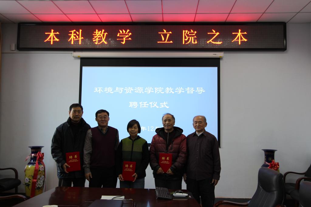 2017年12月4日上午10:30,环境与资源学院在北区理化楼260会议室内举行本科教学督导聘任仪式。
