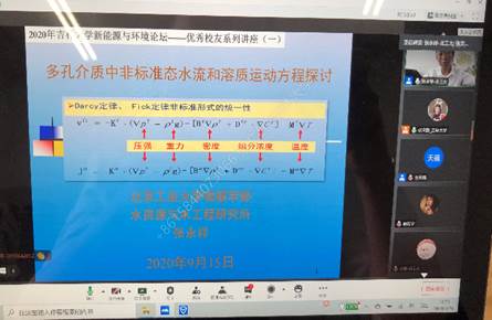 于2020年9月-12月期间,通过腾讯会议线上平台成功举办了本年度“优秀校友系列讲座”系列活动。本次活动每月开讲2次,共开展了8场系列讲座,分别由北京工业大学张永祥教授、清华大学王洪涛教授、中国石油大学曾溅辉教授、清华大学李广贺教授、黑龙江大学井立强教授、生态环境部环境规划院严刚副院长、广州大学胡春教授、河海大学束龙仓教授主讲,由许天福院长和院长助理张文静教授主持。