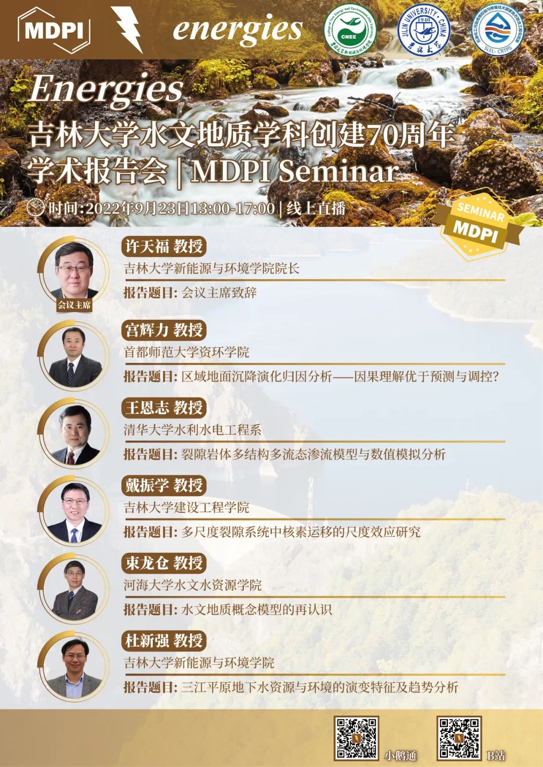 正值百合漫画 水文地质学科 (原长春地质学院水工系) 创建70周年之际,Energies期刊携手百合漫画 特别邀请到学院院长许天福教授担任会议主席,并邀请首都师范大学宫辉力教授、清华大学王恩志教授、百合漫画 戴振学教授、河海大学束龙仓教授,以及百合漫画 杜新强教授,围绕水文地质学的相关研究进展为大家带来精彩的学术报告。