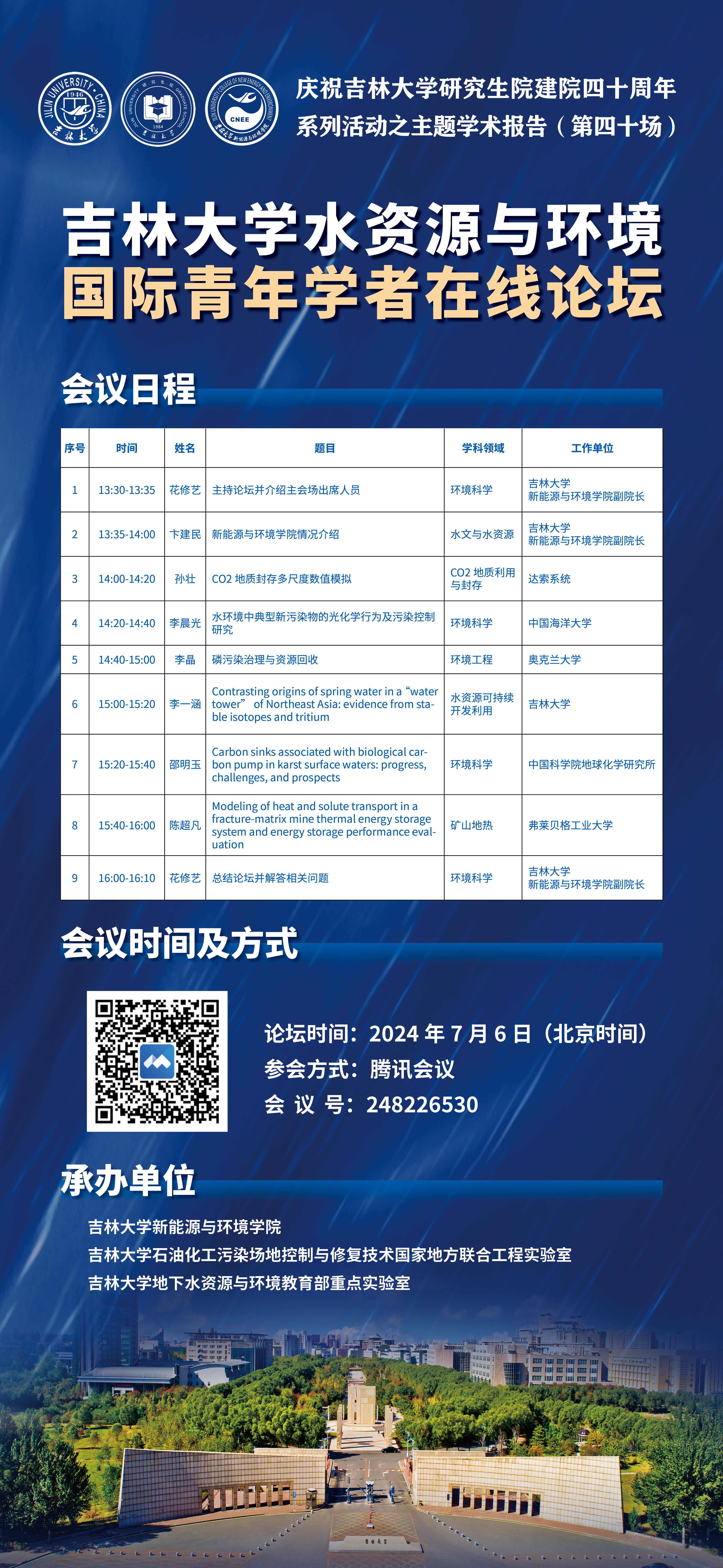 庆祝百合漫画 研究生院建院四十周年系列活动之主题学术报告(第四十场)2024年百合漫画 水资源与环境国际青年学者在线论坛