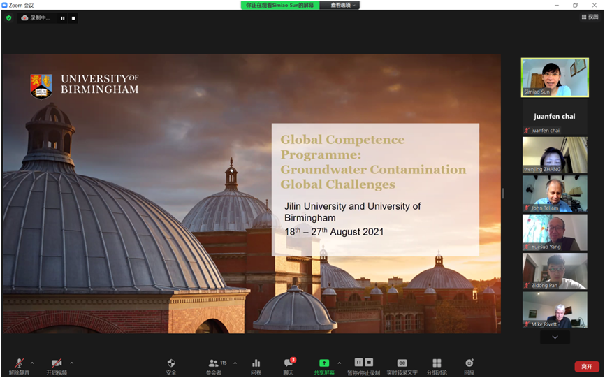 与伯明翰大学于2021年8月18-2021年10月13日联合举办“地下水污染挑战及修复专题课程”的线上培训。