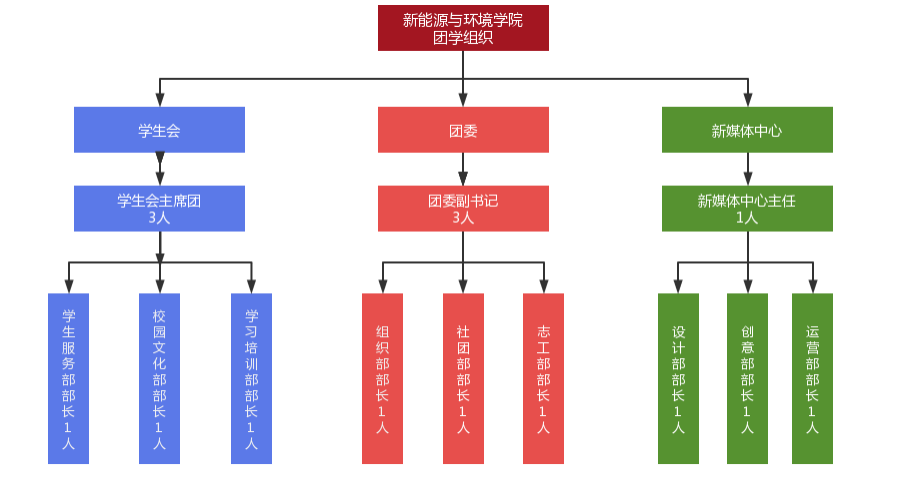学生团委副书记3人;社团部部长1人;组织部部长1人;志工部部长1人。