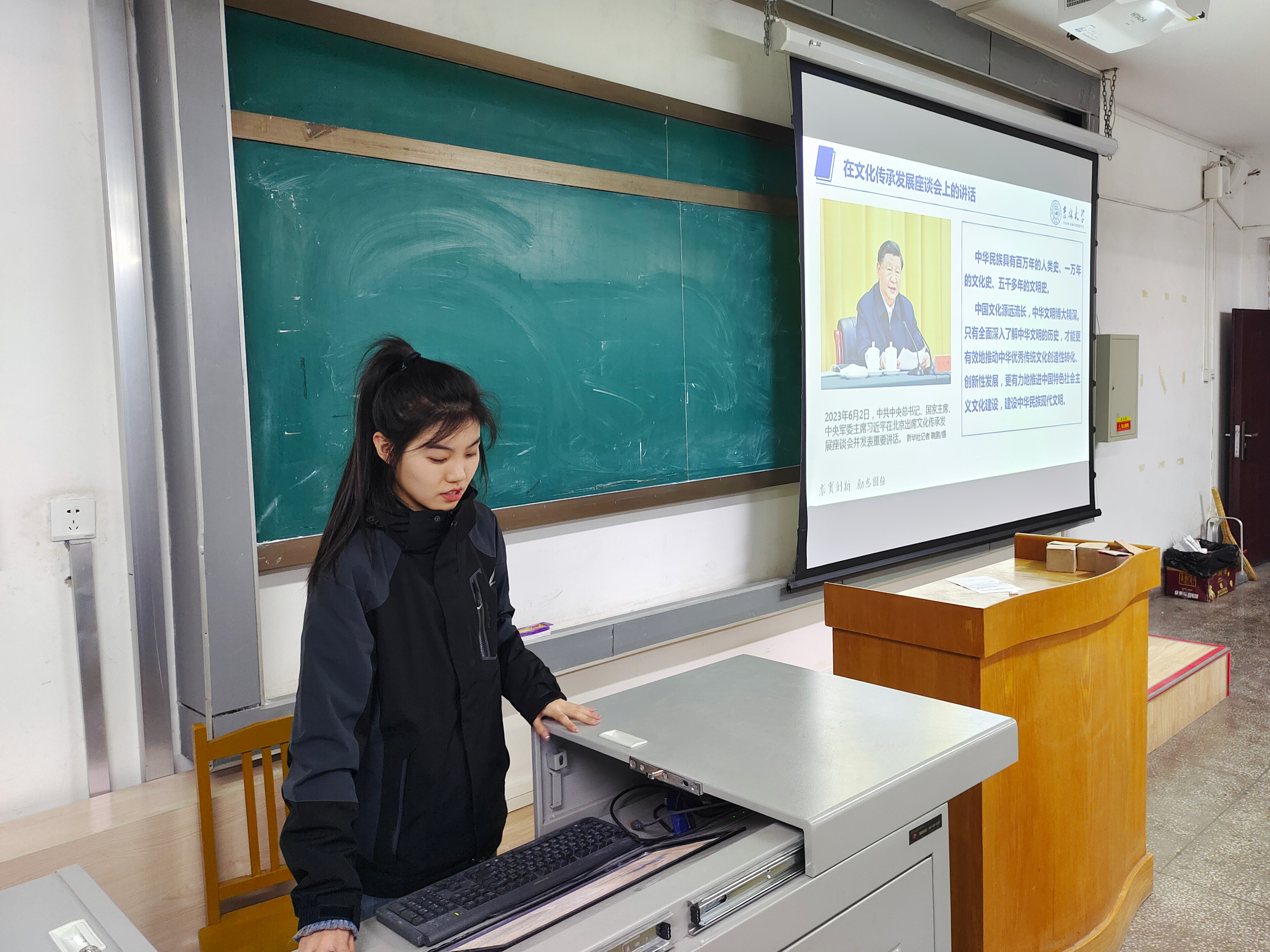 本次活动团支部利用面向广大团员和青年开展学习贯彻习近平新时代中国特色社会主义思想主题教育学习平台,选取平台上2023年6月2日习近平总书记在文化传承发展座谈会发表的重要讲话进行学习和探讨。