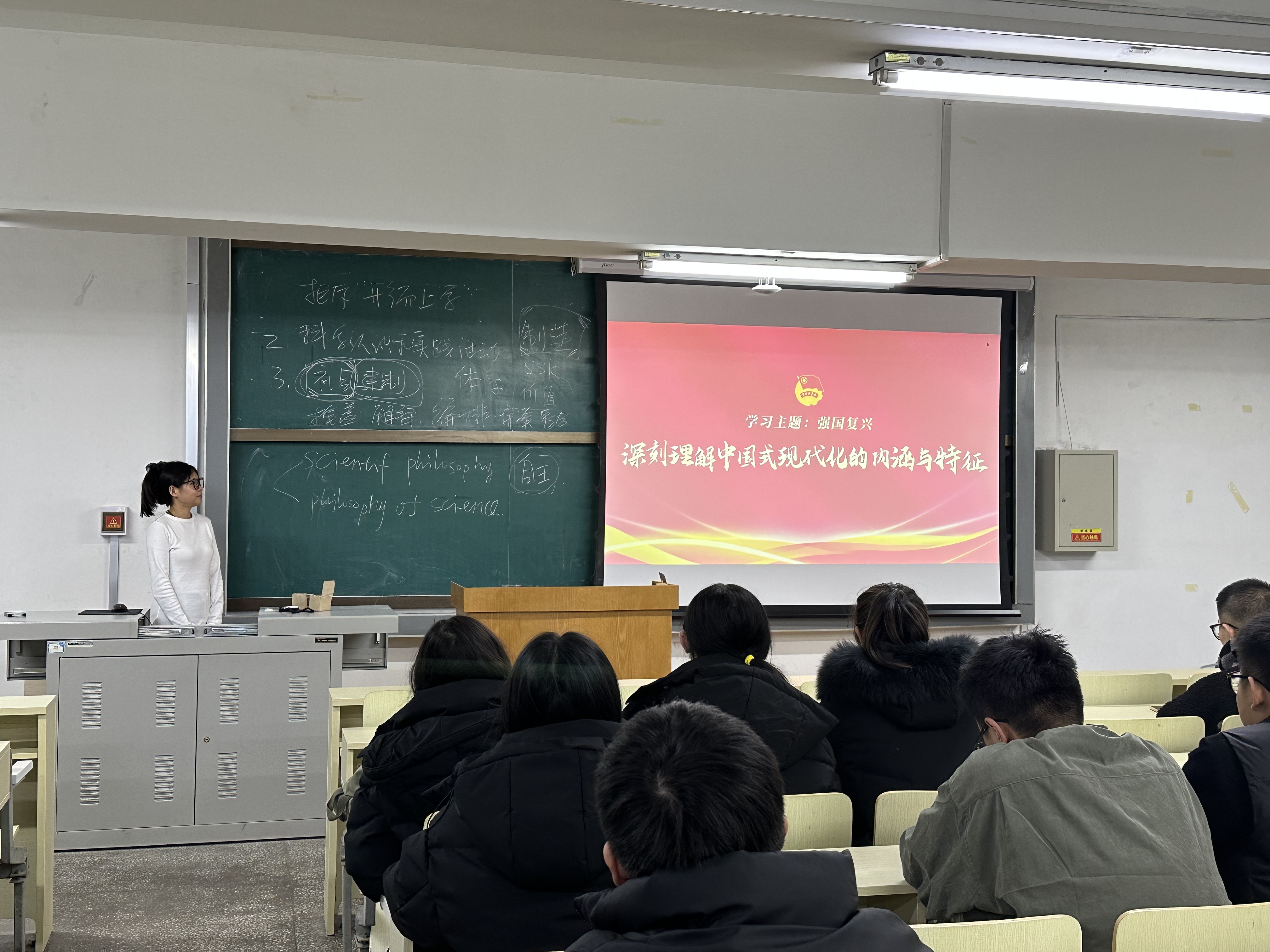 2023级环境工程系研究生团支部在水工楼419开展了“强国复兴”主题团日活动,团支部共有三十余名同学参加本次活动。本次团日活动由2023级环境工程系研究生团支部书记杨春钰主持,活动分为“什么是中国式现代化”和“在推进中国式现代化中贡献青年力量”两大模块进行学习,分别由李莹琪同学主讲,丁李露同学参与讨论分享。