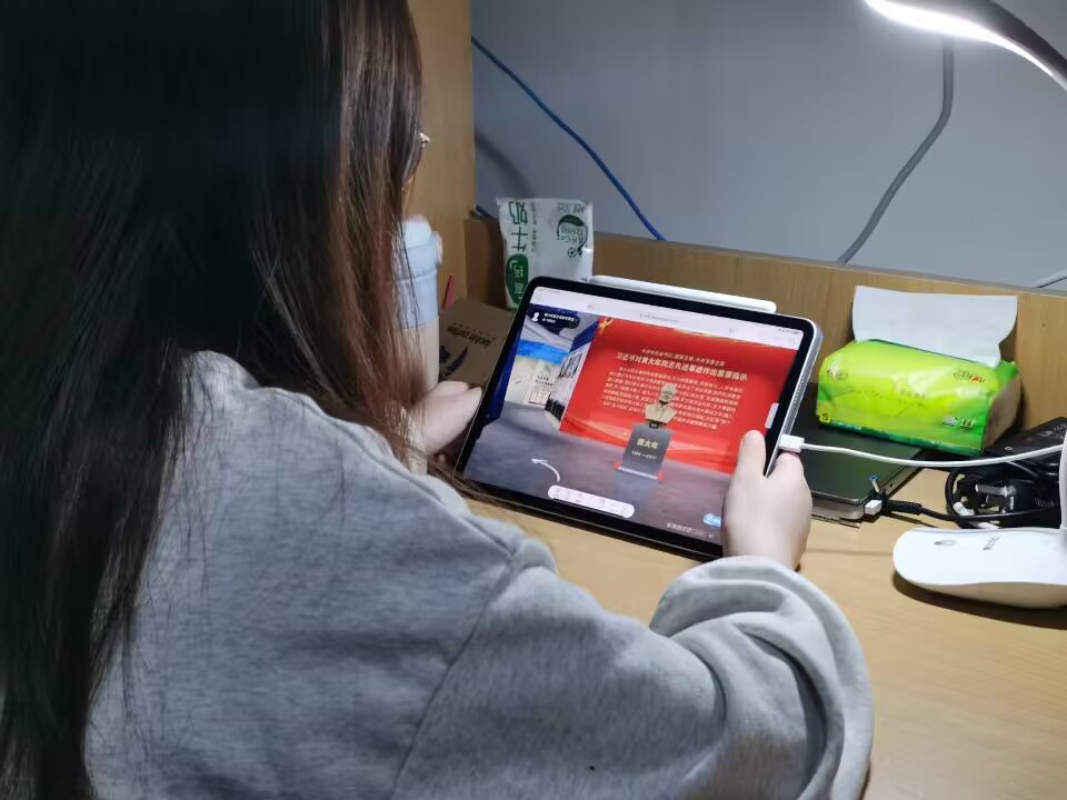 本次活动甘宇娟同学引导各位同学通过线上参观黄大年纪念馆虚拟馆,了解黄大年老师的家国情怀,体会他传奇又令人敬佩的一生,深刻体会黄大年老师以高超的学术和品德铸就了感人至深的生命历程,深刻了解黄大年老师舍弃名利、心有大我、以梦想铸国等精神融汇而成的黄大年精神。