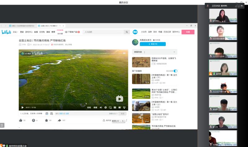 252105班团支部于2023年6月15日开展“保护生态环境,珍惜土地资源”线上主题团日活动。会议由团支书秦梓烨同学主持。