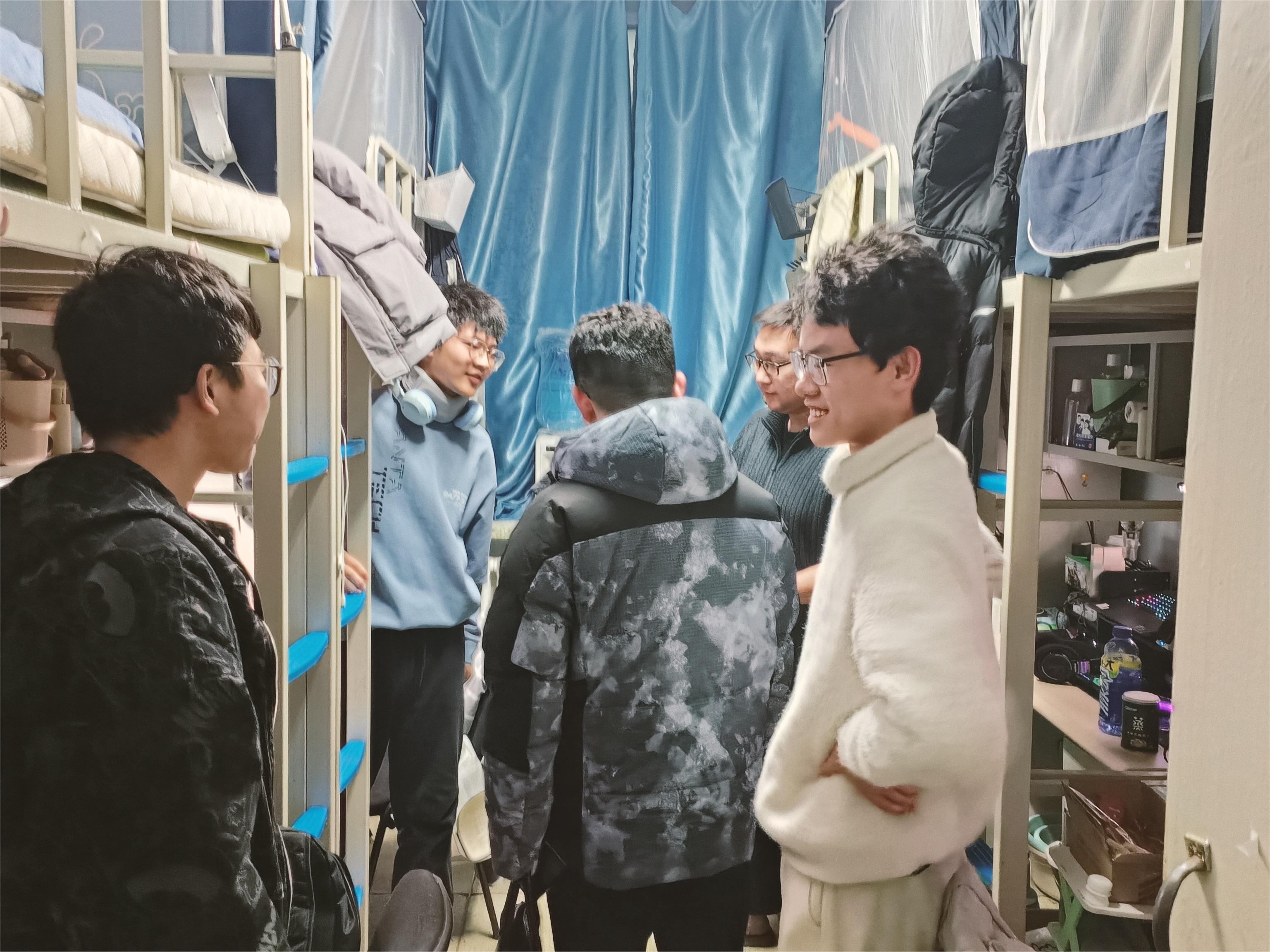 本次寝室走访工作主要从两方面开展。一方面是通过与学生面对面交流了解学生寒假情况,叮嘱同学们在校园内、公共区域等注意自身安全,关注学生们身心状况,解决学生“急难愁盼”问题,并对于有特殊情况的学生,给予关心与照顾。