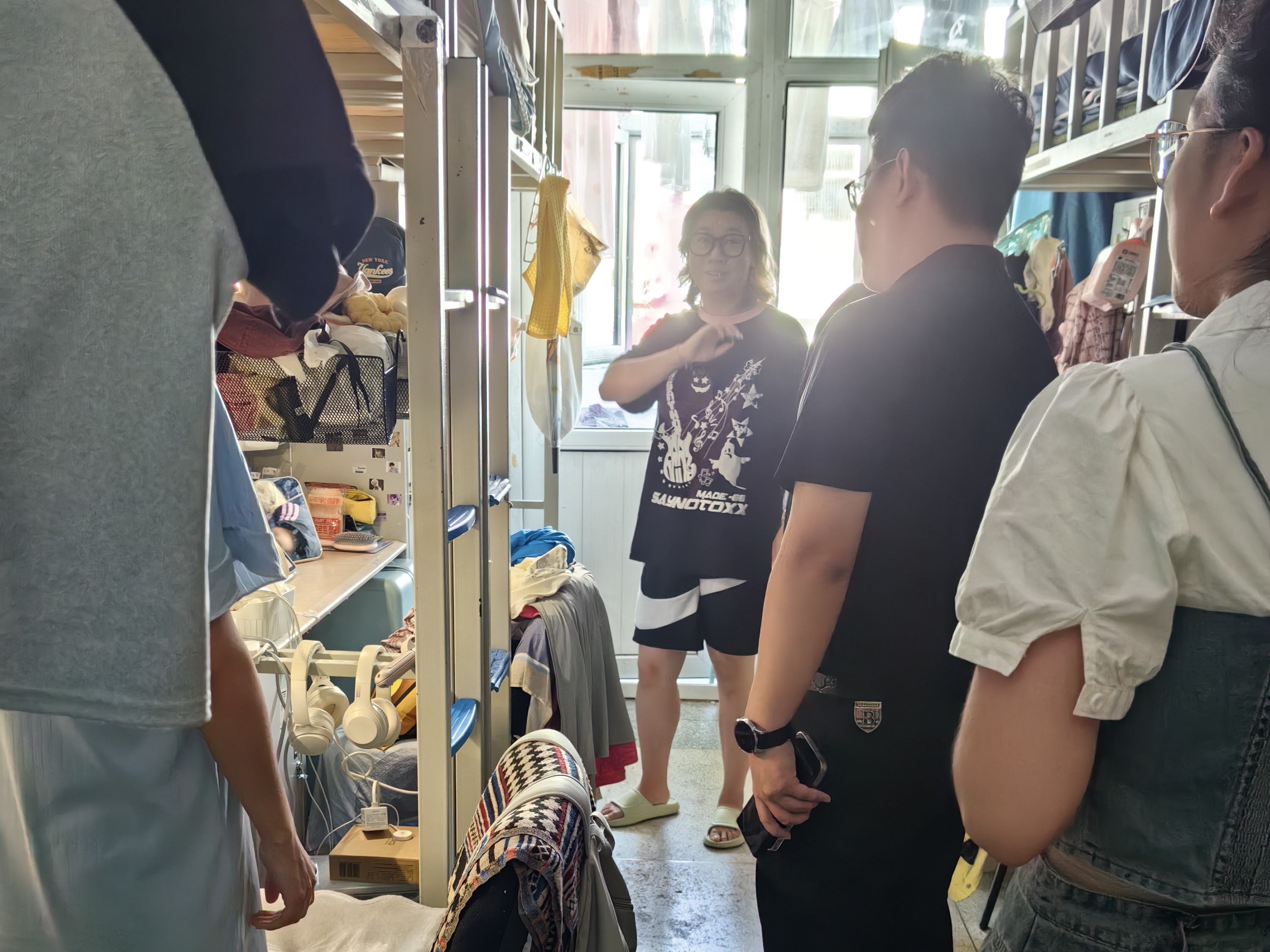 本周为秋季学期第一个教学周,学生工作办公室全体成员对前卫南区、朝阳校区的五所学生公寓进行安全卫生检查,共覆盖170间学生寝室,学生公寓本周安全卫生检查情况附后。9月1日,学院党委副书记、2024级辅导员吴哲、副院长卞建民、新生班主任吕航,来到2024级新生寝室,重点检查违章电器情况,鼓励同学们在军训期间保持良好的状态,认真训练,以强健的体魄迎接即将到来的大学生活。寝室检查过程中,2021级辅导员李薇了解毕业生就业意向,提醒大家提前准备简历及时关注年级群中就业招聘信息。2023级辅导员姜岳彤勉励同学们调整学习状态,迎接新学期。本周检查中多数寝室卫生情况良好,没有发现违章电器。