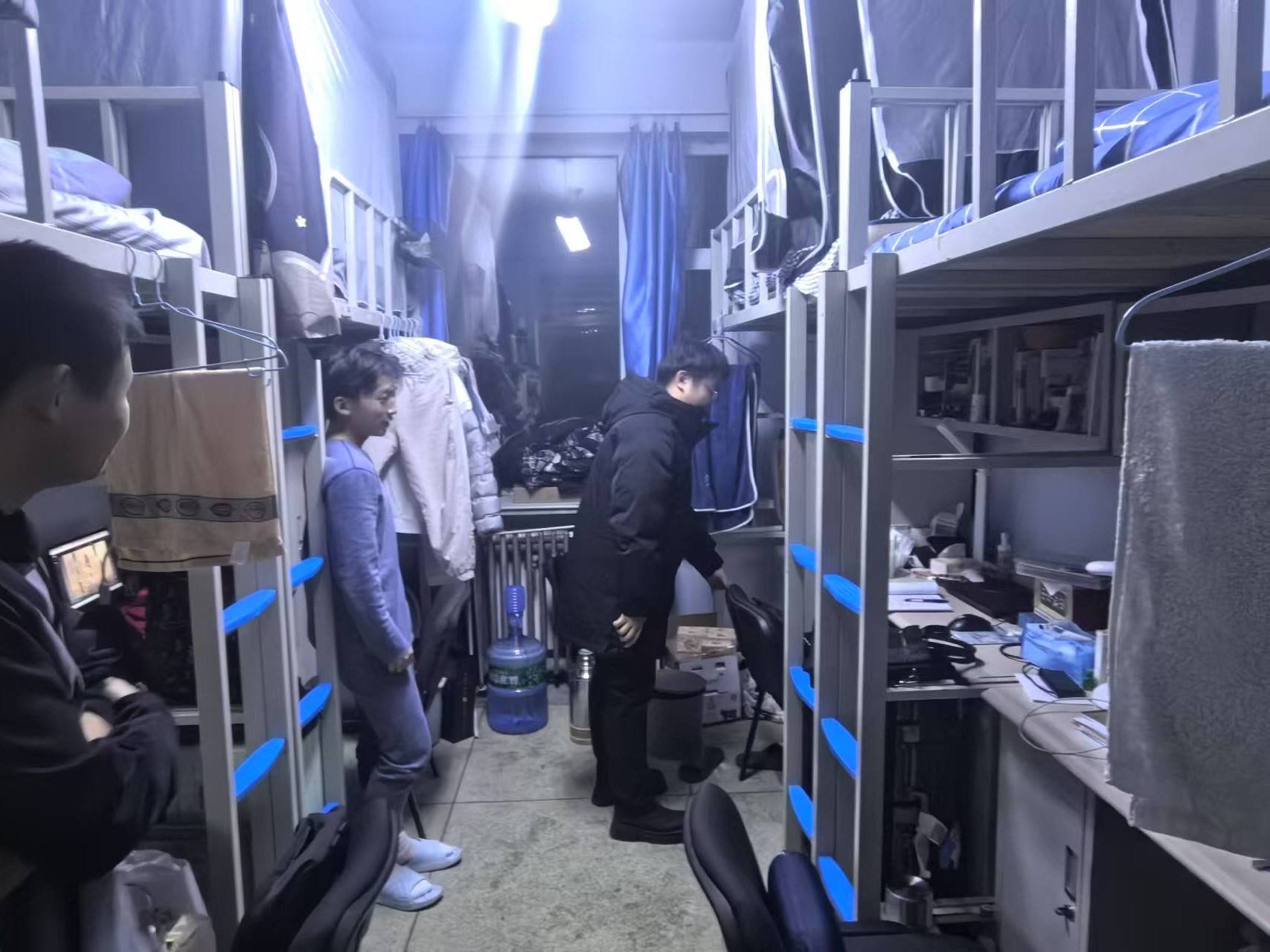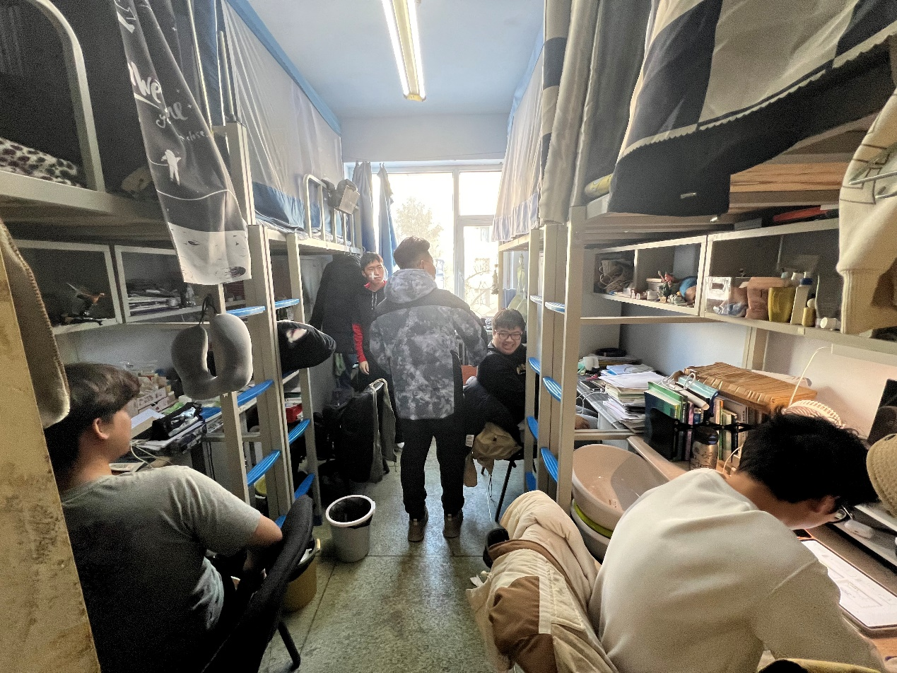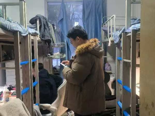 12月13日,2024级新生辅导员助理姜兆轩进入南苑一公寓学生寝室,实地了解寝室供暖情况,提醒同学们近期早晚温差较大要注意增添衣物,并开始有序进行各科课程的期末复习。