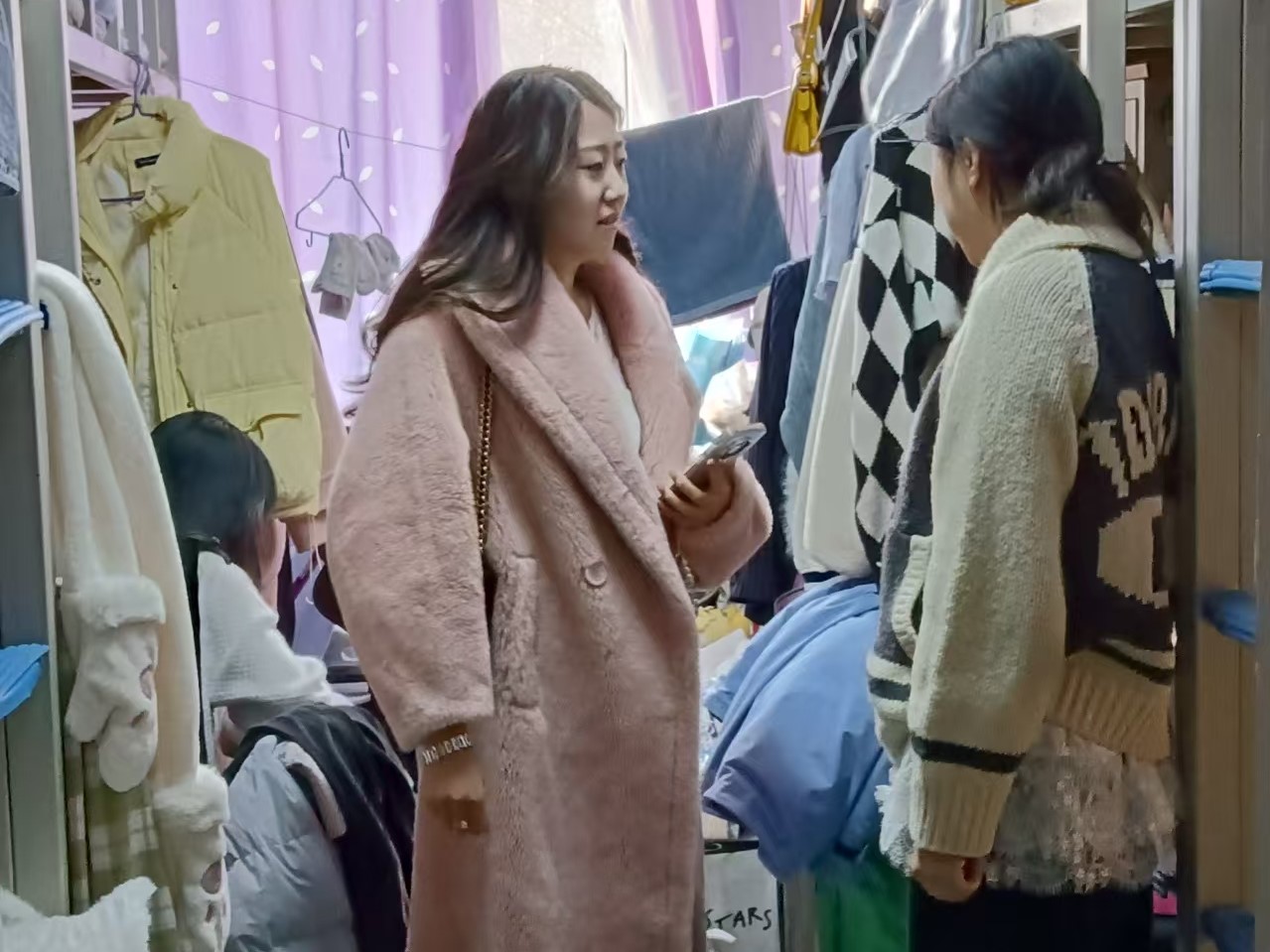 12月13日,2021级辅导员李薇老师进入南苑一公寓、二公寓检查寝室卫生情况和消防安全情况。查寝过程中,李老师提醒同学们注意天气变化,及时增减衣物。