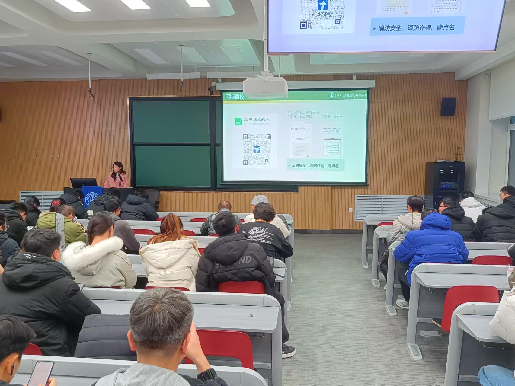 本(专)科学生考试纪律规范》,强调考试纪律,发扬诚信精神,自觉遵守学校考试规范。二是假期安全,及时做好寒假假期返乡情况登记,无论是外出旅游还是归家探亲,都应当文明出行,提升自我保护意识,遵守法律法规、规章制度,避免意外事件发生;特别强调不要以年级、班级等名义欺骗家长外出游玩。三是网络安全,网上“冲浪”应当理性警惕,谨防新型网络电信诈骗,不要“贪小便宜吃大亏”。四是公寓安全,保持寝室整洁有序,寝室最后一名成员离校前关好门窗,做到“人走电断”。