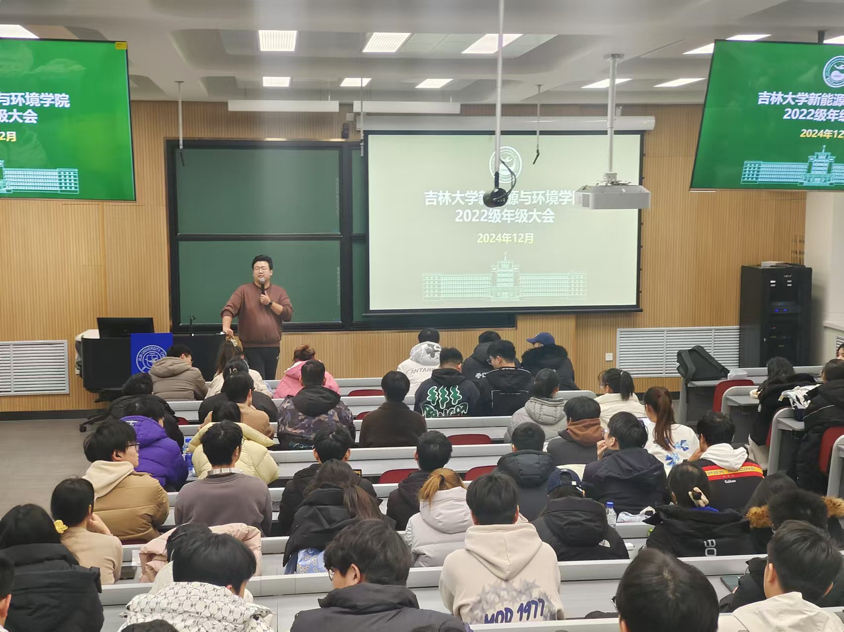 此外,各年级辅导员根据本年级情况进行了专项工作布置。2024级辅导员吴哲老师对民族理论政策和宗教理论进行宣讲,提醒大家及时完成心理慕课期末考试。2023级辅导员姜岳彤老师强调本科学生日常管理要求,鼓励同学们提前对个人职业发展进行规划。2022级辅导员母茂松老师提醒同学们大学生活已经进入后半程,需要尽快确立自己的未来奋斗目标并为之努力。2021级辅导员李薇老师对正在备战考研的同学们进行鼓励,强调考研纪律并预祝大家取得优异成绩。同时,提醒全体同学们关注当前所修学分是否满足毕业标准,课外八学分是否修完,鼓励大家珍惜最后一个寒假,积极参与寒假社会实践活动。