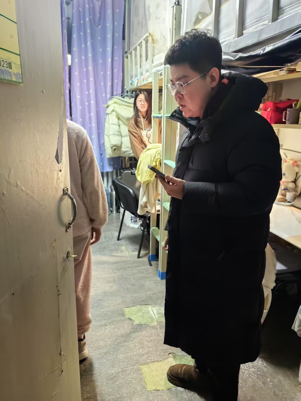 学生工作办公室全体辅导员老师前往中心校区、朝阳校区寝室对学生到校情况进行走访,对学生公寓卫生消防安全情况进行检查。