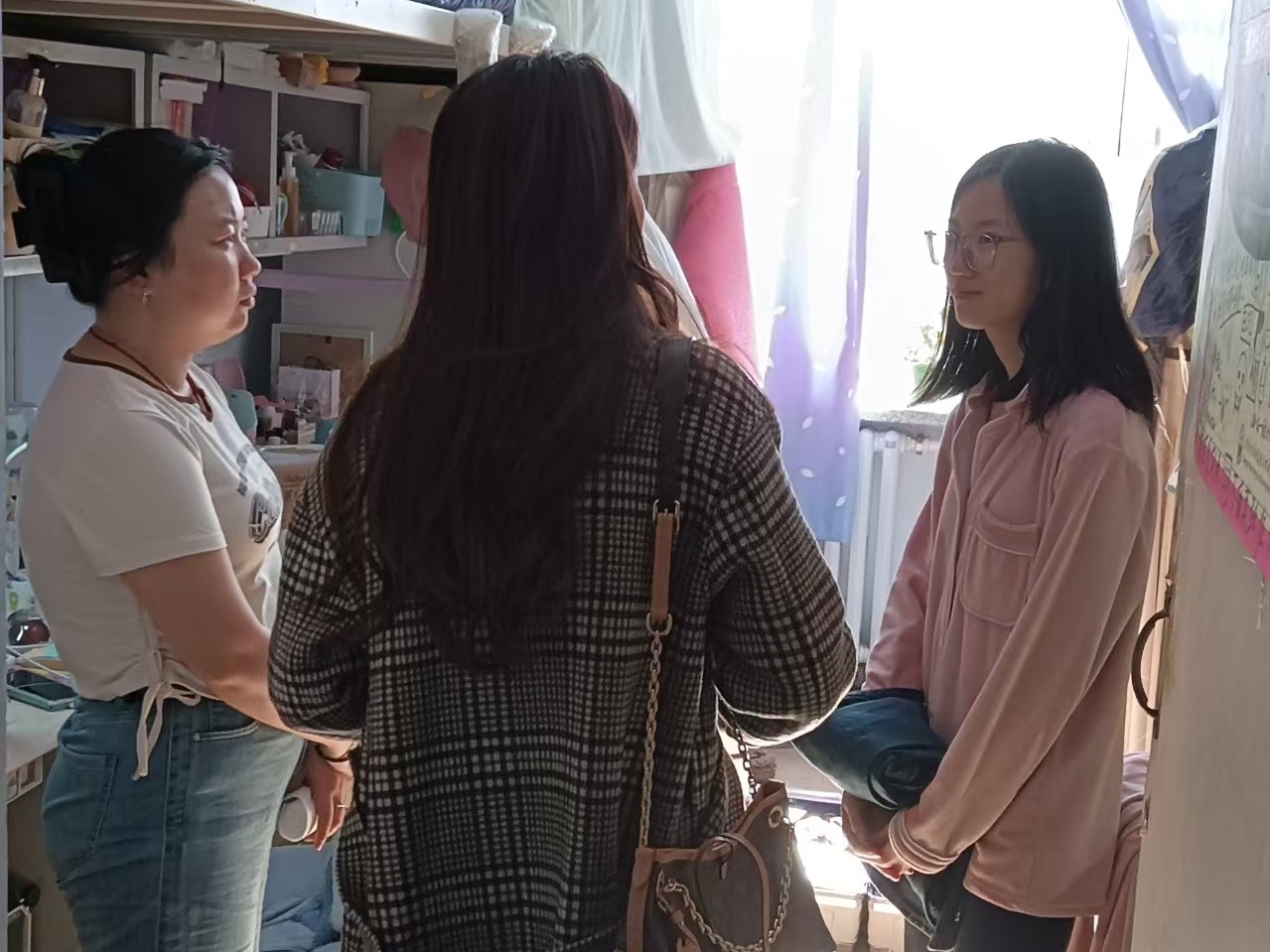 4月18日,2021级辅导员李薇老师进入南苑一公寓二公寓检查寝室卫生情况和消防安全情况。走寝过程中,李老师了解考研学生复试情况,以及求职学生就业进程。