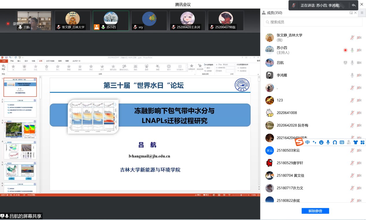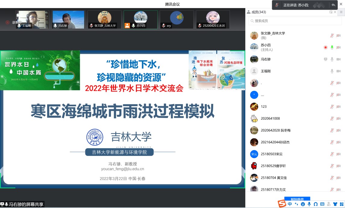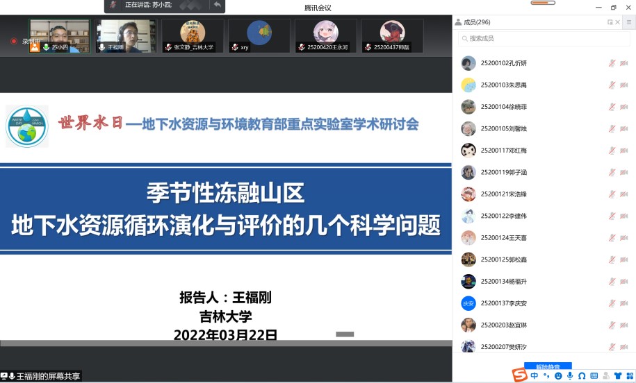 为深入落实习近平总书记节水优先、空间均衡、系统治理、两手发力治水思路,共同探讨地下水保护与利用的平衡之道,322日下午百合漫画 、水资源与环境研究所与地下水资源与环境教育部重点实验室共同组织召开了迎接2022年世界水日学术交流会。会议由水资源与环境研究所所长苏小四教授主持,学院领导、相关教师和研究生、本科生同学350余人在线参加了此次学术交流。
