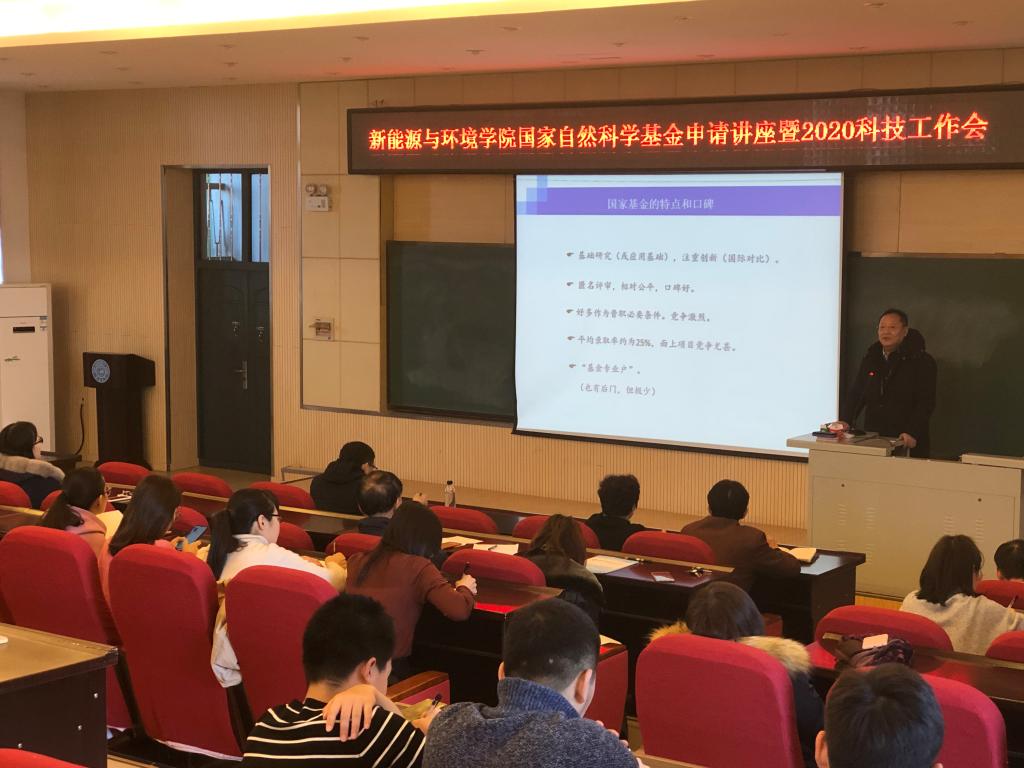 会上,卢文喜教授以《国家基金申请书撰写及讲座:基金申请奇正谈》为题,结合自己申报国家自然基金的成功经验,系统、详尽地介绍了近年来自己申报国家自然基金的心得体会。从宏观上为师生们阐述了如何申报国家自然基金、细节上如何写好申请书、申请技巧与注意事项等,让大家受益匪浅。随后,副院长董军教授对会上对学院2020年的科技工作进行了部署,最后,院长许天福教授对会议进行了简要的总结。许天福教授评价卢文喜教授的讲座实用且高效,并且鼓励我院教师积极申报各类项目,在学院的科研工作中,取得更好的成果。