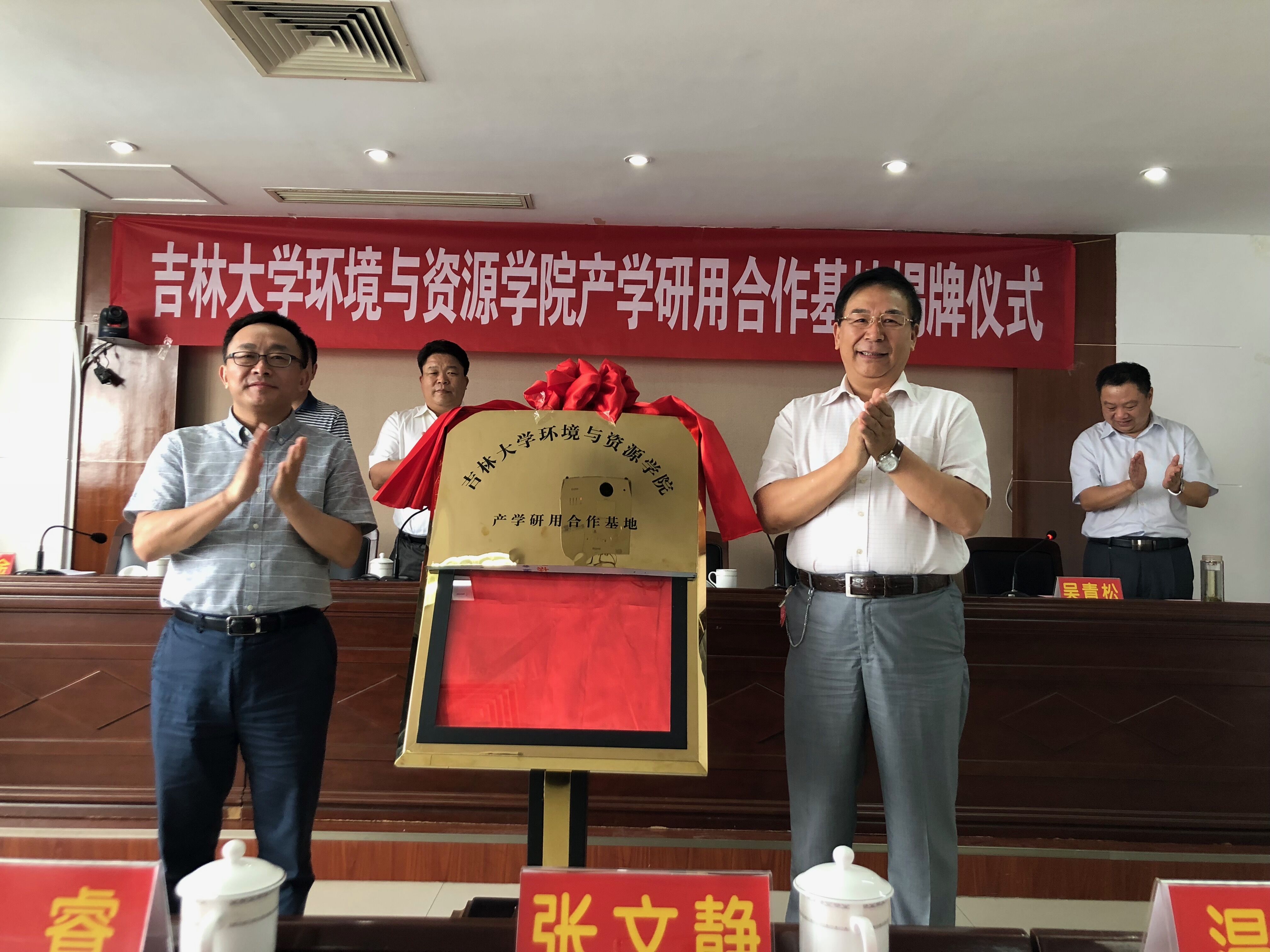 环境与资源学院,优势互补,融合共进,共同打造产学研用高效融合的地质科研平台。我院党委副书记汪祥松指出,科研院校和专业地勘单位的合作是合拍型的结合,是地质工作服务国家的担当体现,希望双方加强深度合作,实现互利共赢。地矿局禄丰年副局长作重要讲话,他强调要着力学习实践习近平生态文明思想,围绕生产科研中的薄弱环节,紧盯重大项目中的实际需要,依托本次产学研用合作基地,有的放矢,引智借力,加强合作,推动项目建设上台阶,成果质量上水平,在服务美丽河南建设上展现新的更大作为。在热烈的掌声中,禄丰年和汪祥松两位领导共同为本次产学研用基地揭牌。
