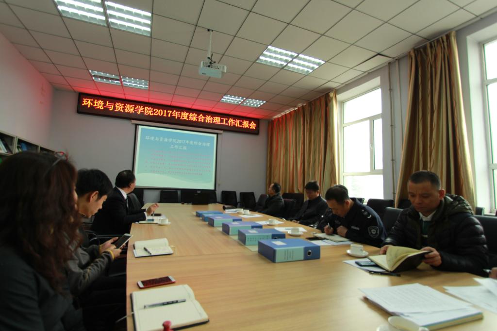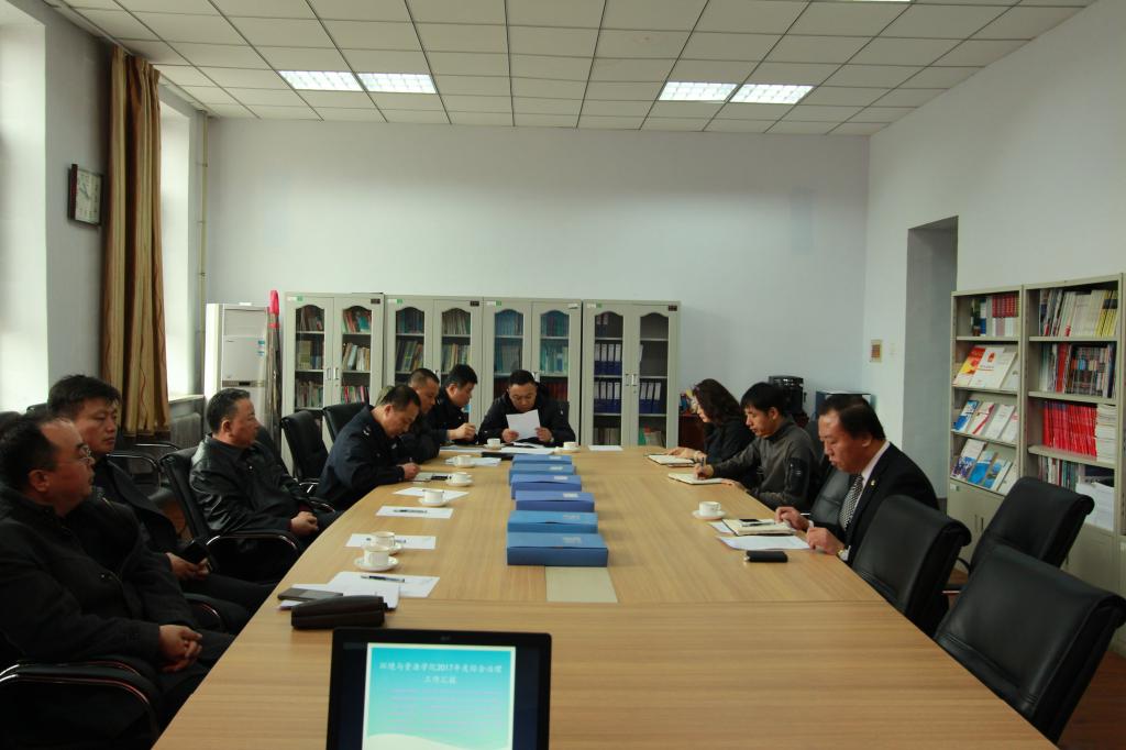 4月10日上午,环境与资源学院2017年度治安综合治理工作汇报会在北区理化楼262召开。学校治安综合治理检查验收小组(北区)组长戴世和主任、副主任等一行7人对我院2017年度治安综合治理工作进行检查验收。学院副院长齐铁志及部分行政科室负责人参加了汇报会。