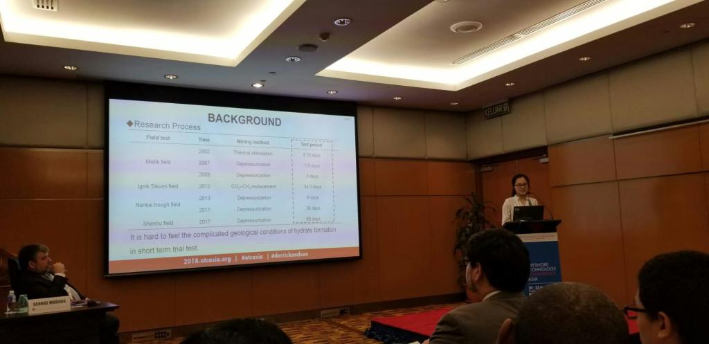 我院许天福教授、辛欣副教授、袁益龙博士、夏盈莉硕士参加了该会议。期间,许天福教授与英属哥伦比亚大学Peter教授共同主持了技术专题报告“Gas Production from Hydrates: Simulation Studies of Flow and Geomechanics”。此外,袁益龙博士作了题为“Evaluation of gas productivity from layered heterogeneity methane hydrate reservoir by depressurization”专题报告,夏盈莉硕士作了题为“Influence of hydraulic connection between the hydrate reservoir and bounding rock on the methane production”专题报告,分别介绍了我院在新型清洁能源天然气水合物试开采领域的研究成果。借助此次在国际会议上做专题报告的机会,展示了我院目前在新型清洁能源天然气水合物试开采领域的研究成果。