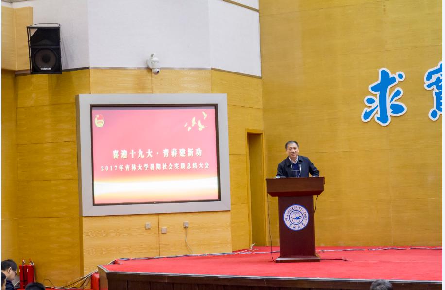 大会第三项,校党委书记杨振斌老师为大会致辞。在致辞总结中,杨振斌书记对环境与资源学院正在开展的“对长白山样地逐年数据监测”活动表示了高度的支持与赞扬。他用自己经历的社会实践案例现身说法,表达了对在场师生的鼓励与期许。他指出:只有真正参与到实践中去,才能获得更高尚的情怀,增长更多的知识,勉励全体师生投身于高尚事业,坚守高尚情怀,做高尚的吉大人,为祖国建设贡献自己的力量。