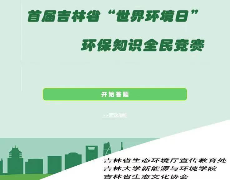 、吉林省生态文化协会联合举办首届吉林省“世界环境日”全民环保知识竞赛,呼吁全省公民积极投身吉林省生态文明建设,为建设美丽吉林贡献力量,得到省内高校和各社会单位积极响应。