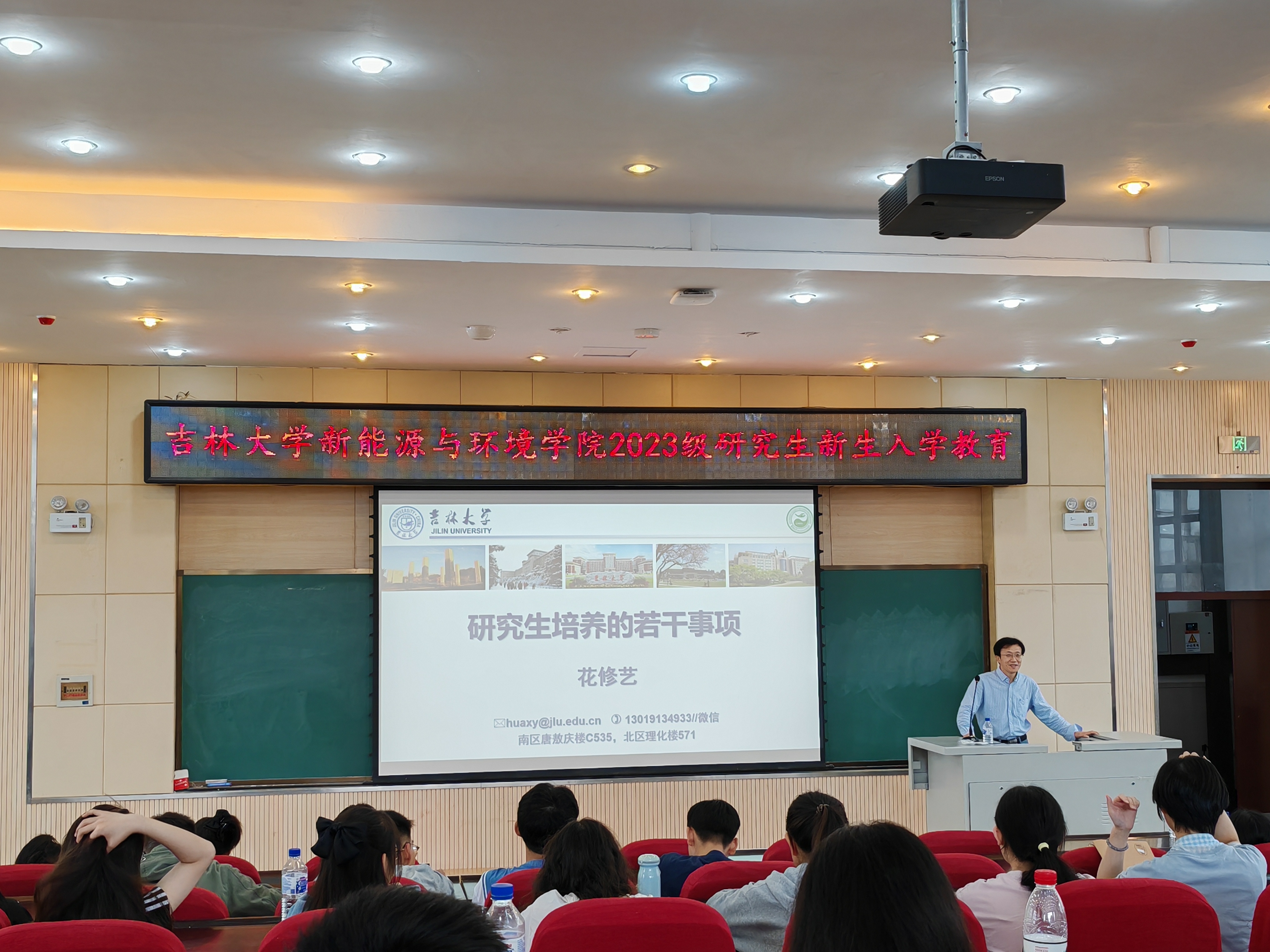 副院长花修艺为新生讲述研究生培养的若干事项,校、院活动资助计划,强调未来毕业的注意事项,明确研究生期间每项工作的时间节点,并提醒研究生在科研道路上重视学术道德。