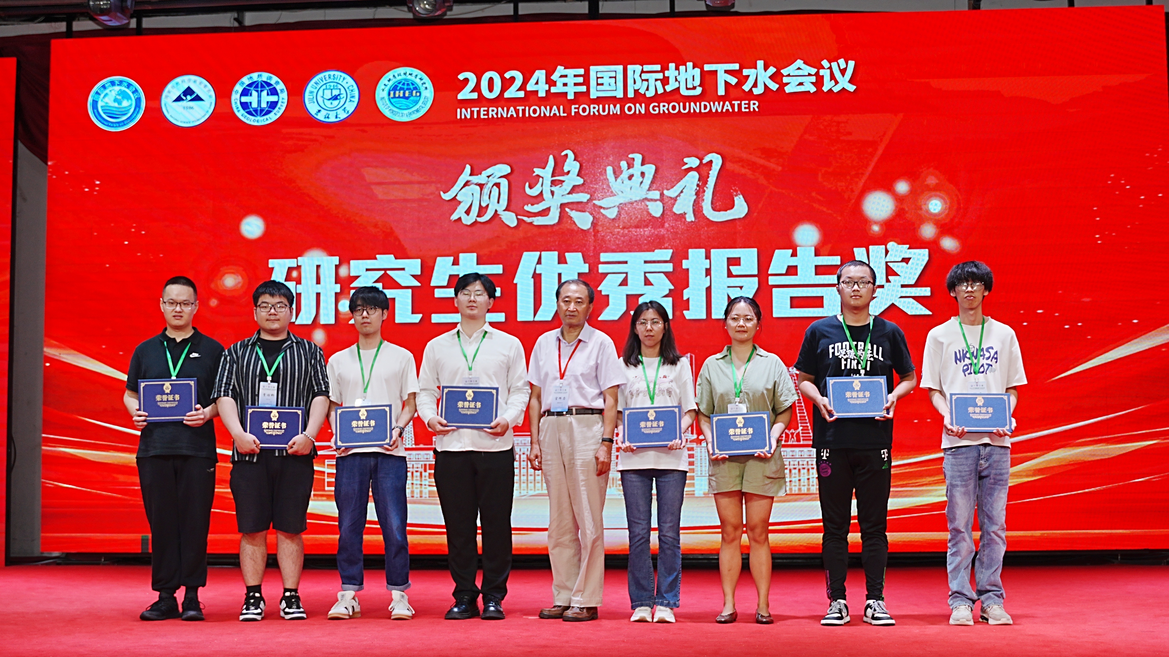 2024年国际地下水会议设置15个分会场,报告的领域和方向不仅涵盖了传统水文地质学的基本研究内容,还结合了现代科技和社会发展趋势,向生态环境和能源资源领域交叉拓展。参会学生和在职人员参会比例相近,体现出年轻化的学术氛围。大会评选了研究生优秀报告奖24名,研究生优秀墙报奖10名,在大会闭幕式举行了颁奖典礼。